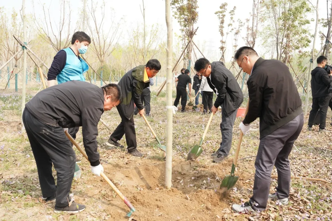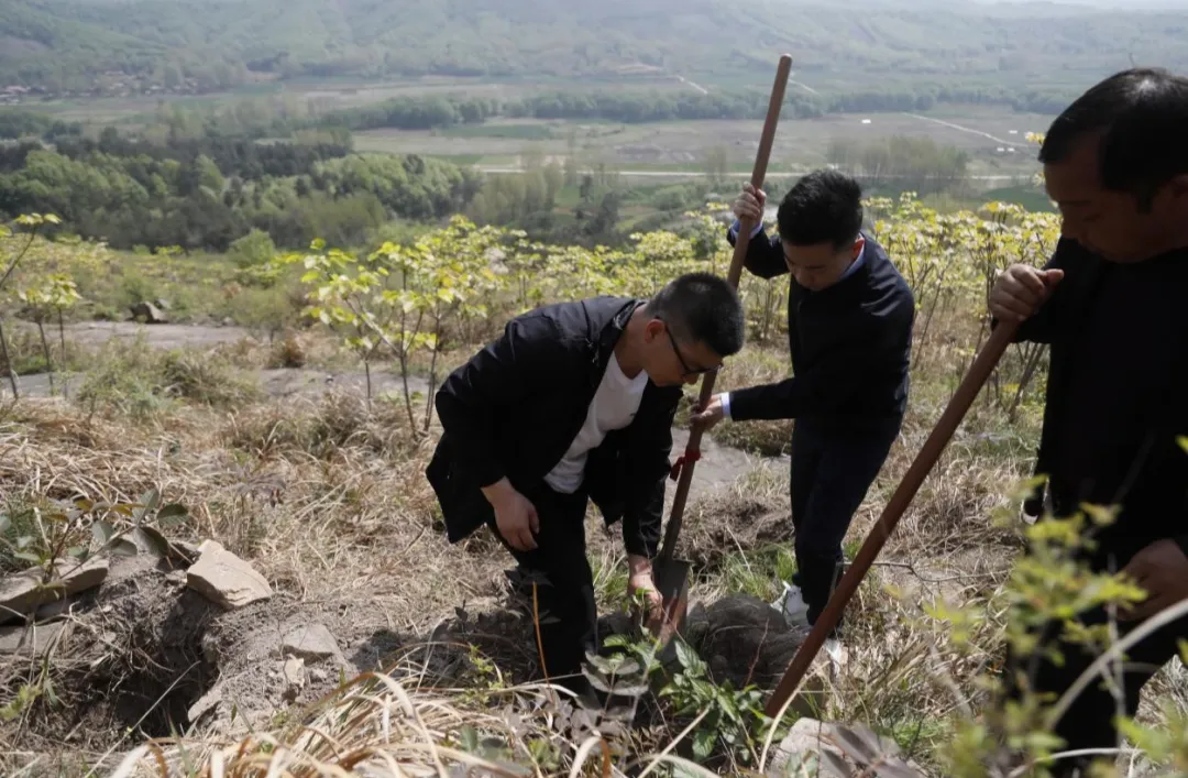 4月12日上午,在河南信阳淮河上游天目山退化林补植修复项目现场,集团公司党委书记、董事长、总经理单忠立,党委委员、副总经理李留彬,信阳市委常委、副市长李俊和大家三五一组,手持铁锹、水桶等工具来到植树区域,挥锹刨坑、扶苗培土、提水浇灌、平整踩实……大家悉心栽种着黑松、麻栎等苗木,现场一派热火朝天的景象。经过一个多小时的辛勤劳动,一株株“新生”的苗木“安家落户”,在微风吹拂下,焕发出勃勃生机。