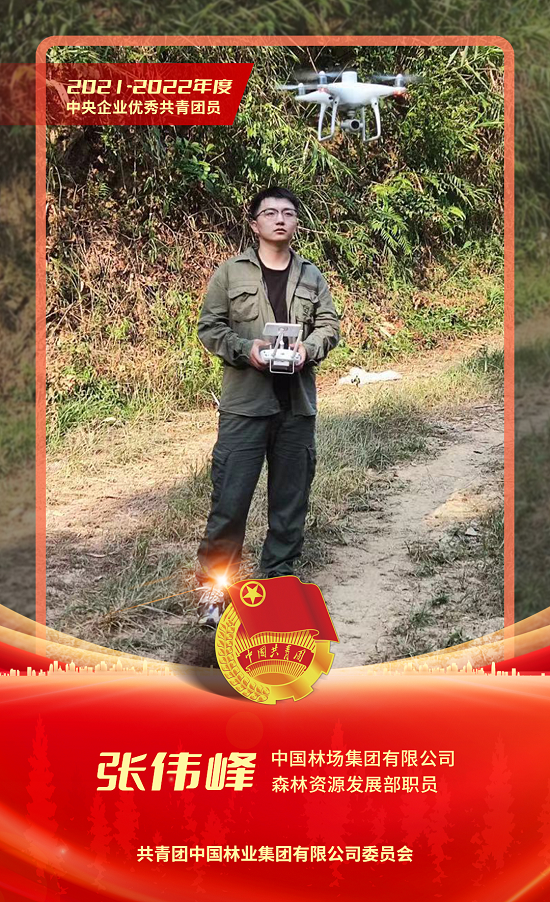 张伟峰同志现任中国林场集团有限公司森林资源发展部职员,2021年1月外派至广西中林国控投资有限公司,曾担任贺州事业部副总经理(主持工作)。初到广西,张伟峰不断通过外业调查、内业处理数据积累经验,慢慢地从“林业小白”成长为掌握各种专业知识与技术的林业人员。作为一名共青团员,张伟峰主动发挥模范带头作用,为确保按期完成国储林建设目标任务,每天与山林为伴,以足丈量贺州地区森林资源,白天上山、晚上进行内业工作,每日工作约12个小时,始终用点滴言行践行着爱岗敬业精神,以昂扬的面貌、坚毅的品格,为国储林建设贡献青春力量。