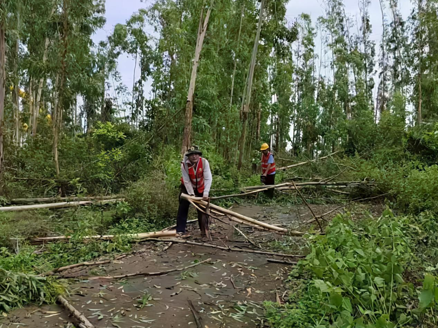 台风登陆后,廉江林场分公司迅速启动应急预案,成立3个复产工作组,明确“三个优先”工作机制,优先清理主干道倒伏林木保障通行;优先扶正楠木等珍贵树种减少损失;优先处置边坡、高压线周边等安全隐患区域。