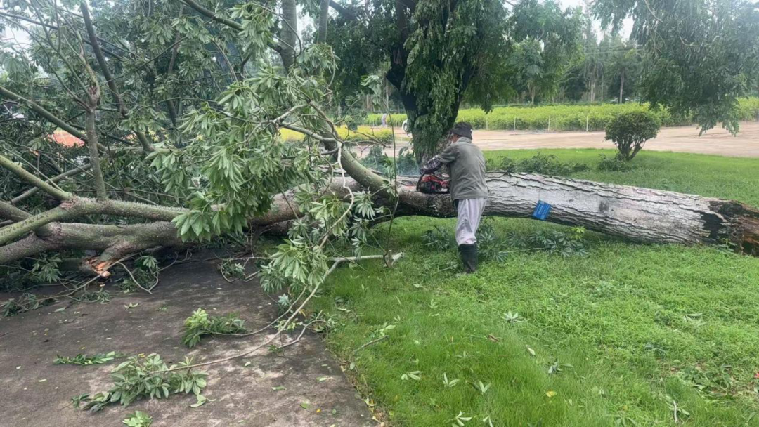 科研分公司安委会成员迅速排查分公司内受灾严重场所,对倒伏树木、断枝等路障进行清理,排除道路安全隐患,确保职工生活及工作场所安全。