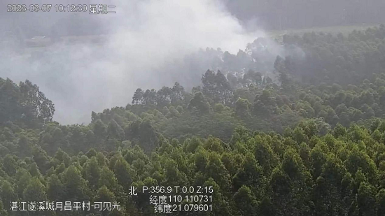 遂溪林场分公司通过监控预警子系统发现平衡林队1009小班发现火情