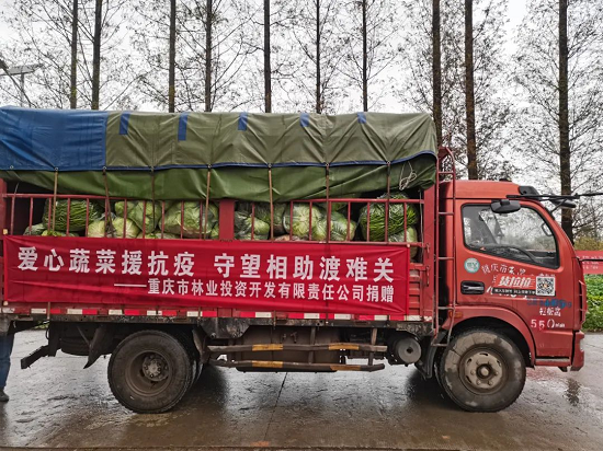 重庆林投公司党总支高度重视疫情防控工作,在得知主城区蔬菜紧缺的保供需求后,积极协调、对接吴家镇双流村万亩蔬菜基地,共计采购5吨蔬菜,第一时间安排保供物资安全及时送达至防疫一线。