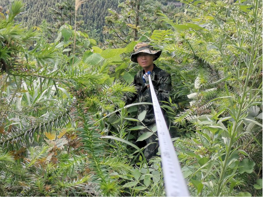 中林广西林业投资发展集团有限公司国储林桂林事业部一线职工邹汉朗坚守岗位,用实干汗水确保固定样地监测项目稳步推进。