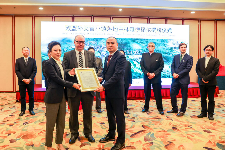 11月3日,集团公司副总经理朱成庆在西双版纳州景洪市出席欧盟外交官小镇落户中林西双版纳雅德秘侬旅游度假区的项目授权仪式,并为项目揭牌。 欧盟外交官小镇项目是结合中欧政治、文化、商务、旅游等各界资源共同参与建设的项目,由欧盟各个国家的资深议员共同组建的欧洲议会欧中友好小组为响应习近平总书记“一带一路”战略、促进中欧友好交流而正式发起。欧洲议会欧中友好小组认为中林集团是中国实力雄厚的大型中央企业,中林西双版纳雅德秘侬旅游度假区项目符合欧盟外交官小镇在区位、生态、文化和发展等方面的落址条件。项目落户后,双方将共同开发建设中林雅德秘侬欧盟外交官小镇项目,通过引入国际商务活动等形式带动雅德秘侬项目的国际化发展。
