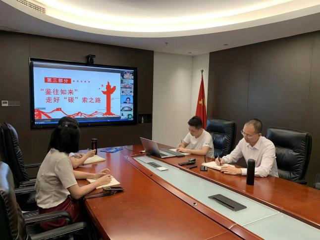 陈永广指出:我们要以习近平生态文明思想为引领,结合集团“双碳”战略,找准均衡点和切入点,走好“碳”索之路,通过“党建+生态”“党建+产业”“党建+林业”“党建+治理”“党建+品质”,点燃生态文明建设的“红色引擎”,当好绿色发展“领航员”、绿色办事“服务员”、绿色幸福“守护员”。